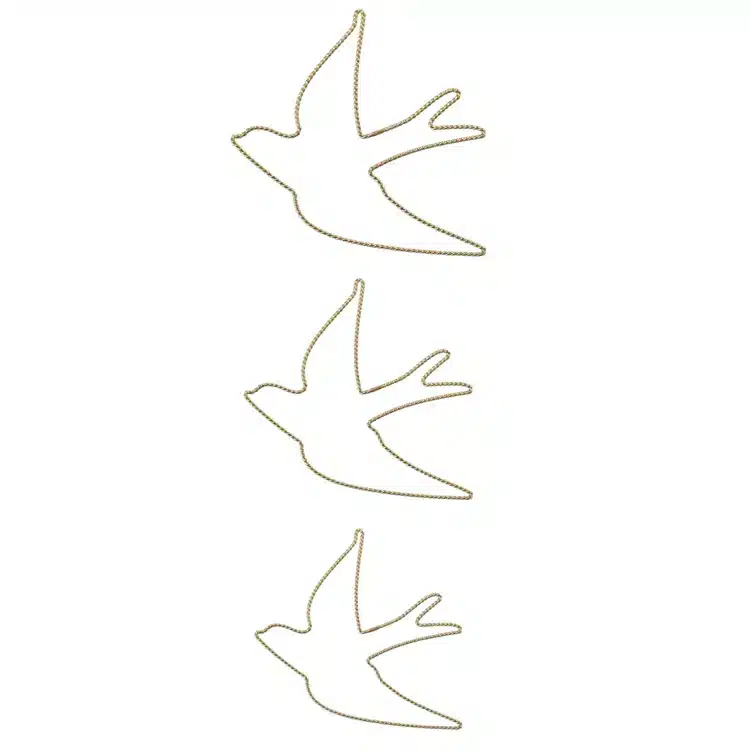 Une décoration murale poétique et aérienne Apportez légèreté et élégance à votre intérieur avec cette décoration murale « Hirondelle » en fil de laiton. Délicatement façonnée à la main, cette création se distingue par sa finesse et son design épuré qui évoque la liberté et la douceur du mouvement. Parfaite pour habiller un mur, une étagère ou une chambre, elle s’intègre harmonieusement dans tout type de décoration, du bohème au contemporain. Le fil torsadé en laiton reflète subtilement la lumière et apporte une touche dorée raffinée à votre pièce. Vous pouvez choisir une seule hirondelle pour une touche discrète ou les associer à plusieurs tailles pour composer une envolée poétique et personnalisée. Informations complémentaires : – Dimensions Taille L : 20 cm x 20 cm – Épaisseur : 0,3 cm – Matière : laiton torsadé – Fabrication artisanale soignée – Légère et facile à fixer ou à poser – Finition dorée élégante et lumineuse – Idéale pour une décoration murale raffinée et aérienne La fabrication artisanale rend chaque pièce unique. De légères variations de forme ou de teinte peuvent survenir.