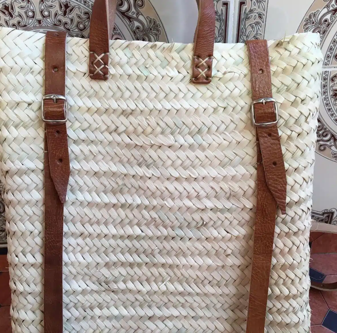 Ce sac à dos en paille unique a été conçu suffisamment grand pour votre téléphone portable, portefeuille, cosmétiques, montres, etc. Panier Sac à Dos en Paille Marocain Chaque sac est fabriqué à la main par des artisans au Maroc, utilisant des matériaux locaux. Parfait pour un usage décontracté ou en ville, pour le shopping, au bord de la mer et d’autres activités. Chaque pièce est unique et doublée d’un tissu traditionnel à l’intérieur. – Taille : Env. H 16″ x L 14″ – Tissé à la main à partir de feuilles de palmier durables – Poignées et bretelles en cuir ajustables – Sac à dos Les dimensions de ce panier sont juste une approximation, car tous les paniers sont faits à la main et sont donc complètement uniques et très légèrement différents en taille.